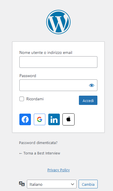 Tramite questo link è possibile visitare il sito ufficiale di BEST INTERVIEW SRL e con questo link, bestinterview.it/wp-admin, si accede al pannello amministrativo dove è presente la gestione dei clienti con la possibilità di pianificare appuntamenti e fare percorsi di coaching.